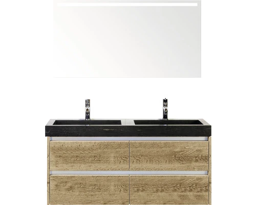 Badkamermeubelset Dante 120 Cm Natuurstenen Wastafel Incl. Spiegel Met Verlichting Natuur Eiken