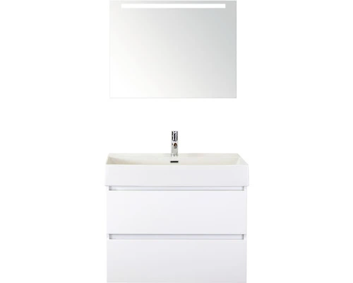 Badkamermeubelset Maxx XL 80 Cm Incl. Spiegel Met Verlichting Wit Hoogglans