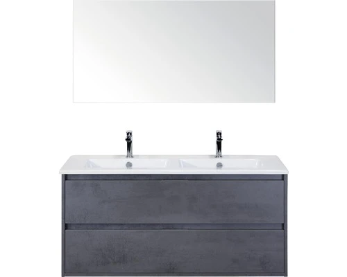 Badkamermeubelset Porto 120 Cm 2 Laden Keramische Wastafel Incl. Spiegel Beton Antraciet