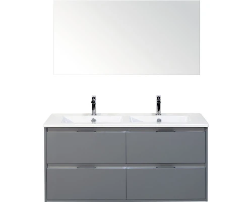 | Artikel bestaat uit | Dubbele keramische wastafel, Spiegel, Wastafelonderkast |