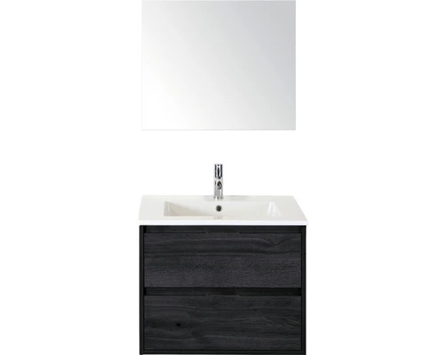 Badkamermeubelset Porto 70 Cm Keramische Wastafel Incl. Spiegel Black Oak