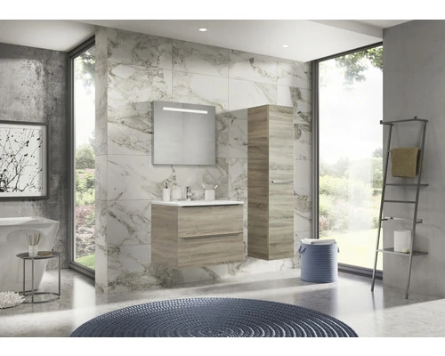 PELIPAL Badkamermeubelset Cavallino Greeploos 100 Cm Incl. Spiegelkast Met Verlichting Riviera Eiken