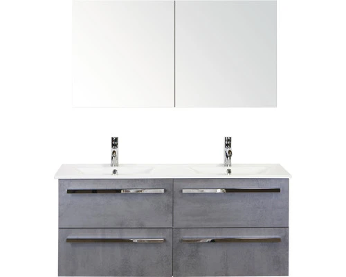 Badkamermeubelset Seville 120 Cm Keramische Wastafel Model 1 Incl. Spiegelkast Beton Antraciet