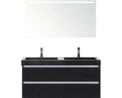 Badkamermeubelset Porto 120 Cm 2 Laden Keramische Wastafel Incl. Spiegel Met Verlichting Kiezelgrijs