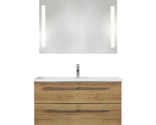 PELIPAL Badkamermeubelset Cavallino 100 Cm Incl. Spiegel Met Verlichting Riviera Eiken